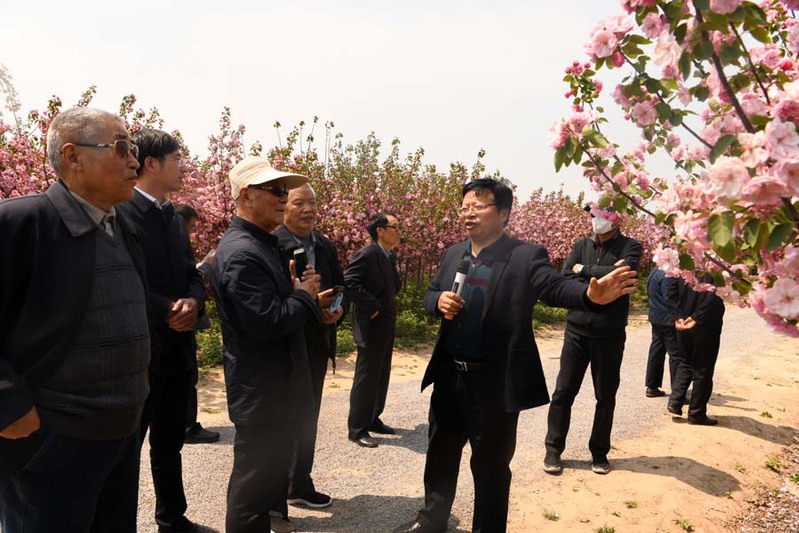 櫻花林間,正值盛花期的晚櫻品種松月吸引了老干部們的眼球,只見重疊的花瓣,剛開的是粉色,半開的是白色,著實讓人喜愛。聽朱明亮介紹,農場公司引進了早中晚期20多個品種的櫻花,花期從三月初能延續到四月底,在觀賞的同時,還可出售苗木,實現了生態效益與經濟效益的雙提升,老同志們給予了充分的肯定。
