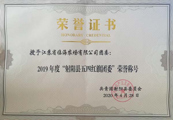4月29日,在共青團射陽縣委員會組織的紀念五四運動101周年暨“農商銀行杯”第十屆射陽縣十大杰出青年事跡分享會上獲悉,臨海農場公司團委榮獲2019年度“射陽縣五四紅旗團委”榮譽稱號。