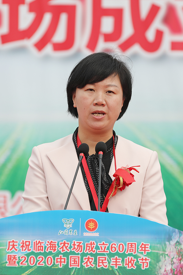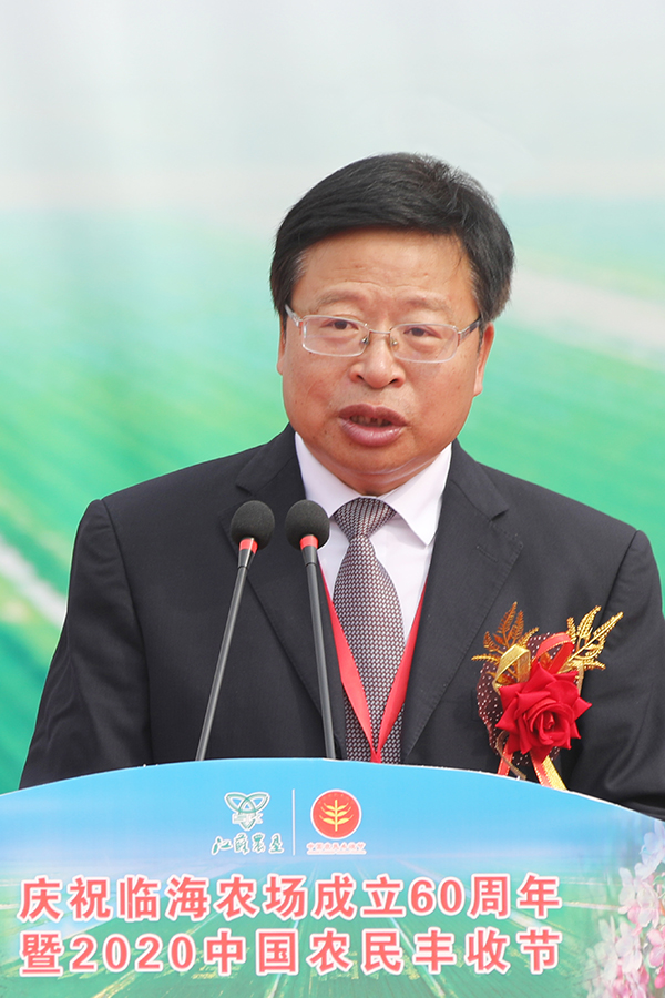 江蘇省農墾集團公司黨委副書記、總經理胡兆輝代表江蘇省農墾集團公司黨委向臨海農場公司建場60周年表示熱烈祝賀。他簡述了近年來江蘇農墾的發展理念和取得全國農墾利潤總額第一名的佳績,高度贊揚了臨海農場公司建場六十周年來各項事業的發展成就。胡兆輝指出,江蘇農墾將以“三個一”體系建設為抓手,在深化改革中不斷發展,努力打造中國現代農業航母的“江蘇號”。他祝愿臨海明天更加燦爛輝煌,希望臨海人進一步解放思想,弘揚農墾精神、社會主義先進文化,加強與地方合作,科學管理、創新發展、團結拼搏,為建設“經濟強、產業優、職工富、生態美、農場興”的新農場不懈奮斗,為江蘇農墾建設發展做出更大貢獻!