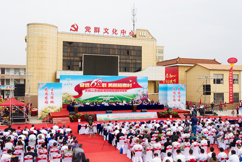 斗轉星移,滄海桑田,追憶崢嶸歲月,敘說巨大發展,展望美好明天。在金秋送爽的豐收季節里,臨海農場公司幸福歡欣地迎來了六十華誕。922日,鏗鏘鑼鼓歡迎四方賓朋,裝扮一新的街道張燈結彩、人頭攢動,洋溢著節日的喜慶氣氛,江蘇省臨海農場公司建場60周年慶祝活動在黨群文化中心廣場隆重舉行。江蘇省農墾集團黨委副書記、總經理胡兆輝,中共射陽縣委副書記、射陽縣人民政府縣長吳岡玉,南京林業大學副校長張金池、江蘇省沿海開發集團總經理周金陽,省內外友好單位、集團相關部門領導、地方政府相關部門負責人、原農場黨政主要領導、農墾兄弟單位領導、校企合作高校領導、農場籍知名人士、離退休老同志代表、農場知青代表、農場公司黨委領導班子成員和職工居民代表700多人歡聚一堂,共同慶祝臨海農場公司建場60周年。