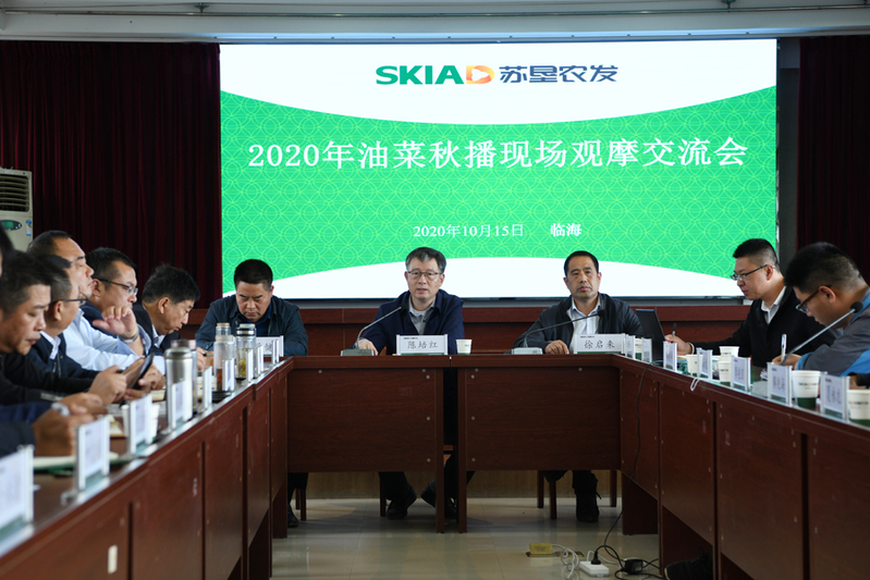 為高質(zhì)量落實油菜種植任務(wù),提高油菜播種質(zhì)量,10月15日上午,蘇墾農(nóng)發(fā)在臨海分公司召開2020年油菜秋播現(xiàn)場觀摩交流會,蘇墾農(nóng)發(fā)副總裁陳培紅、種植業(yè)管理中心總經(jīng)理徐啟來、黃海、臨海、新洋、新曹、弶港、南通、江心沙、寶應(yīng)湖分公司副總經(jīng)理、農(nóng)業(yè)中心主任、農(nóng)水中心主任及有機種植基地負責人參加了會議。