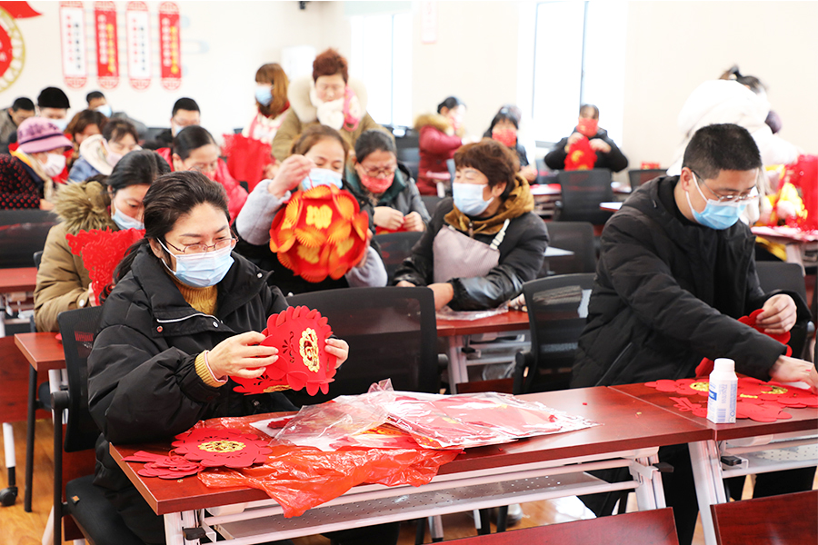 在做花燈環節,居民們互相探討、分工協作,組裝框架、綁燈穗、安裝……不一會兒一個個色彩鮮艷的燈籠就制作好了,大家舉著自己的作品都無比的開心和自豪。具有節日氣息的紅燈籠,不僅給節日增添了濃厚的色彩,也寓意著紅紅火火的生活,增進了鄰里感情,讓大家更加深刻的感受到社區“大家庭”的溫馨,提升了社區凝聚力。