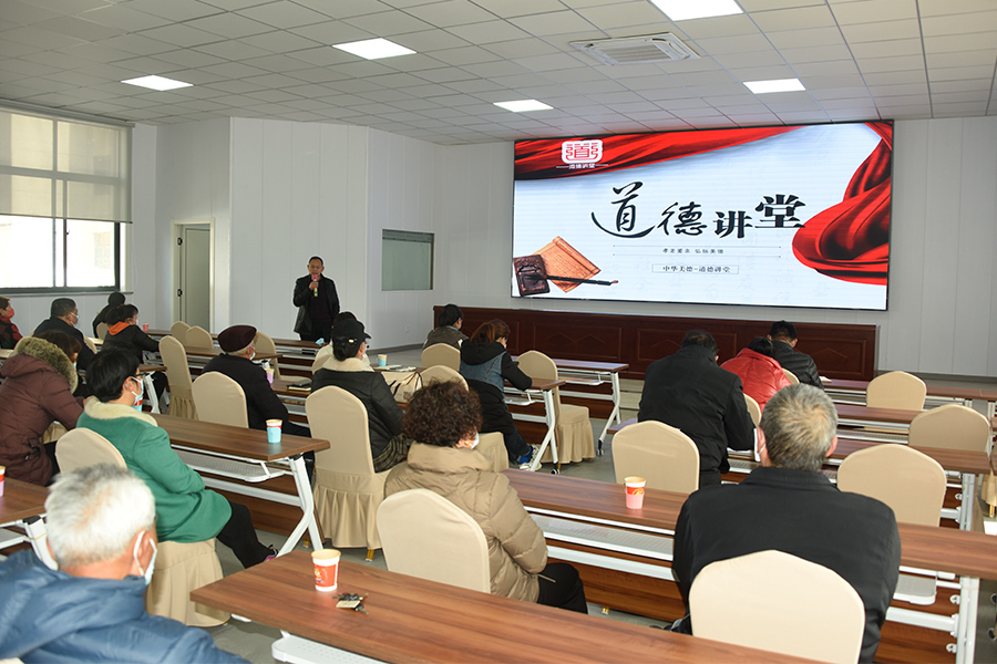 此次道德講堂共分為“唱歌曲、看短片、講故事、誦經典、品感悟、送祝福”6個環節進行。首先全體齊唱《公民道德歌》,感受文明禮讓,尊老愛幼,愛崗敬業等道德風尚。通過觀看公益系列短片——《等你回家》,讓大家深深認識到父母就是我們的港灣,就是保護我們的臂膀,我們要學會感恩,感恩父母給我們的一切。第三屆“厚德臨海人”—王慧為大家講述了自己的道德故事,她丈夫常年在外打工,她既要照顧在縣城讀書的兒子,還要照顧患病的父母。母親患癌常年臥床不起,她多年如一日的,守護在母親的床前,喂藥、擦洗身子,無微不至地照料,從沒有半句怨言,她堅守著對家人的責任和義務,從細微之處關心家中的老人,用自己的默默付出詮釋著對長輩的感恩與報答,讓大家真真切切感受到了道德的力量、榜樣的力量。隨后,大家誦讀了關于孝老愛親的一段經典語錄。