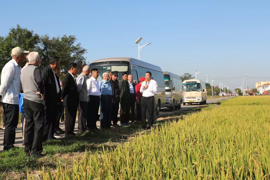 老同志們實地觀摩了二生產區8大隊豐產農田、五生產區29大隊智能灌溉示范區、四生產區21大隊高標準農田、外拓基地順泰生產區等。觀摩中,老同志們精神矍鑠、熱情高漲,每到一處都興致勃勃、感慨萬千、贊不絕口。在五生產區29大隊智能灌溉示范區,老同志們認真聽取介紹,不時駐足交流。當得知智能灌溉無論距離多遠,只需要打開手機,就能輕松管水時,一位老同志有感而發:“沒想到現在農業技術這么發達,坐在家里輕輕一點控制開關,汩汩灌溉水就能穿過地下管道,從噴灌頭中噴涌而出,不到5分鐘,稻田就喝上了新鮮的水了!”