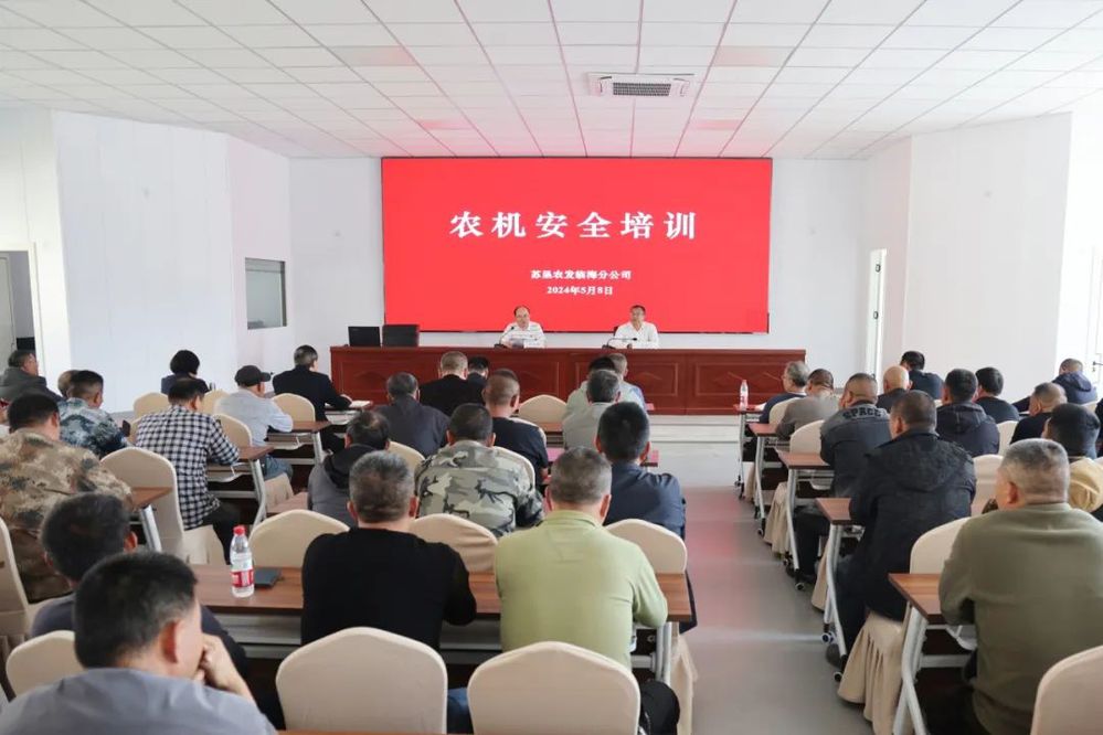為了提高農業機駕人員安全意識和技能水平,增強農機隊伍服務能力,確保農機安全生產形勢持續穩定向好。5月8日,蘇墾農發臨海分公司舉辦農機安全培訓和事故應急演練活動,農場公司黨委書記、董事長、臨海分公司總經理王燦明,黨委委員、臨海分公司副總經理馮衛東出席,農機水利中心全體人員、農機站站長、農業機械駕操作人員共80余人參加活動。