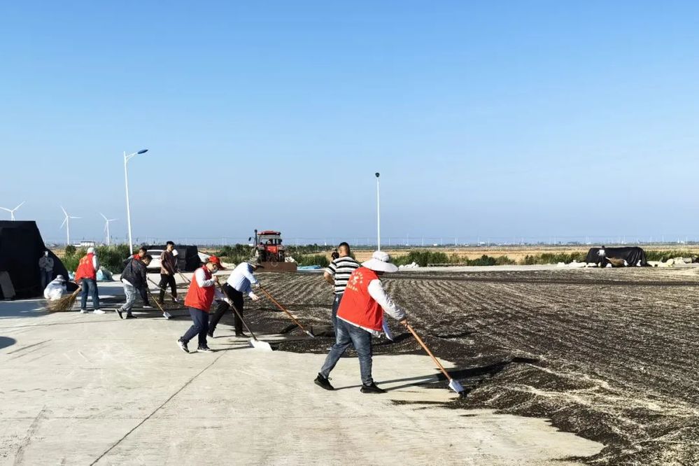 在外拓基地順泰生產(chǎn)區(qū)曬場(chǎng)上,收割好的油菜籽鋪滿曬場(chǎng),志愿者們俯下身子將一車車油菜籽進(jìn)行翻場(chǎng)、晾曬,防止油菜籽因濕發(fā)熱、霉變、生芽。他們有的負(fù)責(zé)駕駛翻場(chǎng)機(jī)作業(yè)、有的在曬場(chǎng)揮動(dòng)攤粑為菜籽翻面,有的在田頭開(kāi)票,他們擼起袖子、甩開(kāi)膀子,頂著驕陽(yáng)似火的烈日干得熱火朝天,汗流浹背。“最近這幾天天氣好,我們搶抓晴好天氣進(jìn)行晾曬,油菜籽水分測(cè)量一到位,就能直接入庫(kù)。”順泰生產(chǎn)區(qū)主任蔡小平說(shuō)到。“我從來(lái)沒(méi)看過(guò)這么多黨員干部在場(chǎng)頭翻曬油菜籽,這不愧你們是農(nóng)墾人,你們的工作方法和敬業(yè)精神值得我們學(xué)習(xí)。”合作單位順泰農(nóng)場(chǎng)辦公室負(fù)責(zé)人陳必雄如是的說(shuō)。