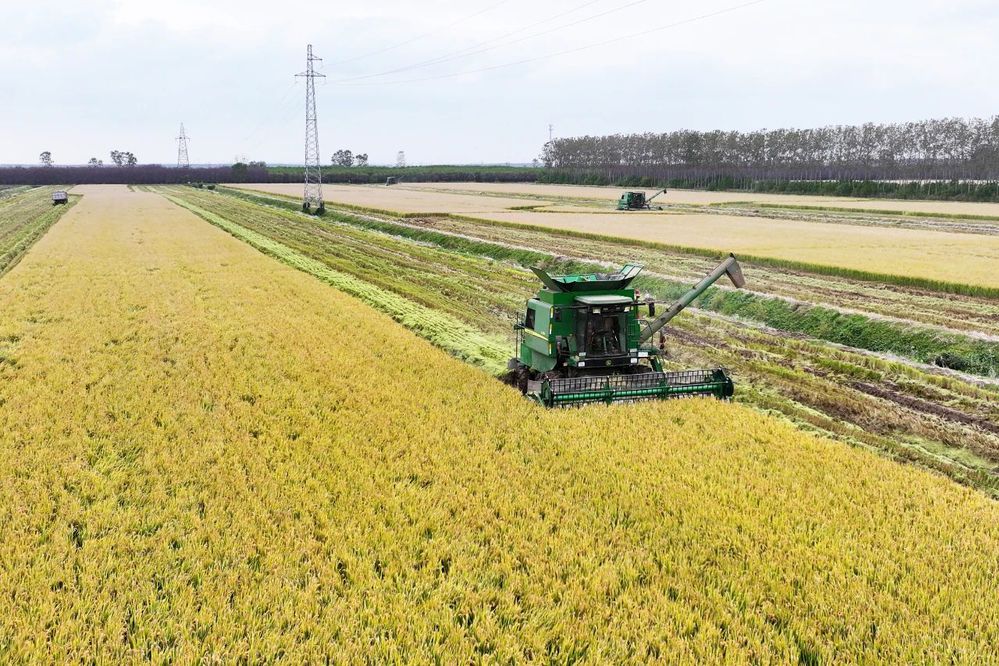 春種一粒粟,秋收萬顆子。秋風吹過大地,臨海農場廣袤的田野染上一片金黃,機器轟鳴,譜寫著生動的“三秋”進行曲。