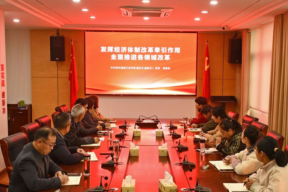 學習會上,參學人員集中觀看視頻課程《深入學習貫徹習近平總書記關于全面深化改革的一系列新思想、新觀點、新論斷和黨的二十屆三中全會精神》《發揮經濟體制改革牽引作用全面推進各領域改革》等重要內容,課程從不同角度深入解讀全會精神,明確進一步全面深化改革的目標、任務和意義。