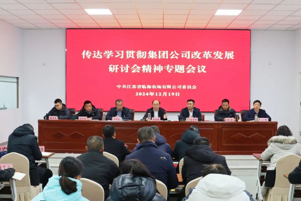 12月19日上午,臨海農場公司黨委召開專題會議,傳達學習貫徹江蘇農墾改革發展研討會精神。農場公司黨委書記、董事長、臨海分公司總經理王燦明,黨委副書記、總經理孫國祥等黨委領導班子成員出席會議,各單位、部門副科級以上人員參加會議。