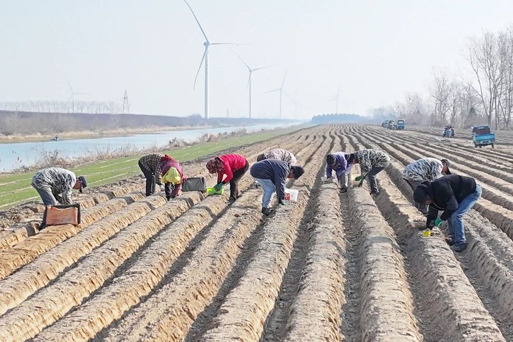12月20日,臨海農場運糧河畔的農田里一片繁忙景象,十多名工人正井然有序地進行中藥材種植工作,奏響了農場產業發展的新樂章。