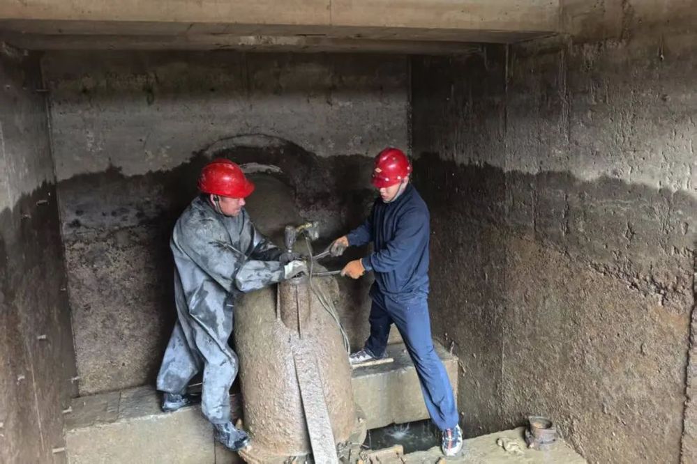 在水泵站現場,農機總站泵站維修員宋余明正帶領牛程、何俊毅等分公司新進員工,有條不紊地開展泵站設備檢修作業。檢修隊員神情專注、配合默契。宋余明憑借豐富經驗,指導大家對泵站設備進行全面“體檢”。他們仔細聆聽水泵運轉聲音,不放過任何異響;緊盯設備每個部件,不放過一絲抖動跡象。