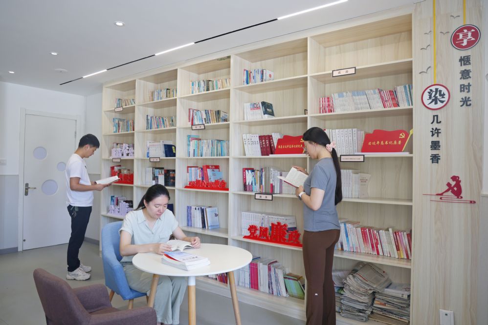 臨海農(nóng)場(chǎng)新時(shí)代文明實(shí)踐所職工書屋內(nèi),青年員工們利用閑暇時(shí)光在這里閱讀“充電”,營(yíng)造出濃厚的學(xué)習(xí)氛圍,這里也成了大家提升自我的好去處。