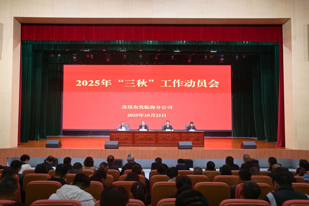 為貫徹落實蘇墾農發“三秋”工作會議精神,高標準、快進度推進今年“三秋”生產工作,10月21日,臨海農場召開2025年“三秋”工作動員會。農場公司黨委書記、董事長、蘇墾農發臨海分公司總經理王燦明,農場公司黨委副書記、總經理孫國祥等領導班子成員出席會議。
